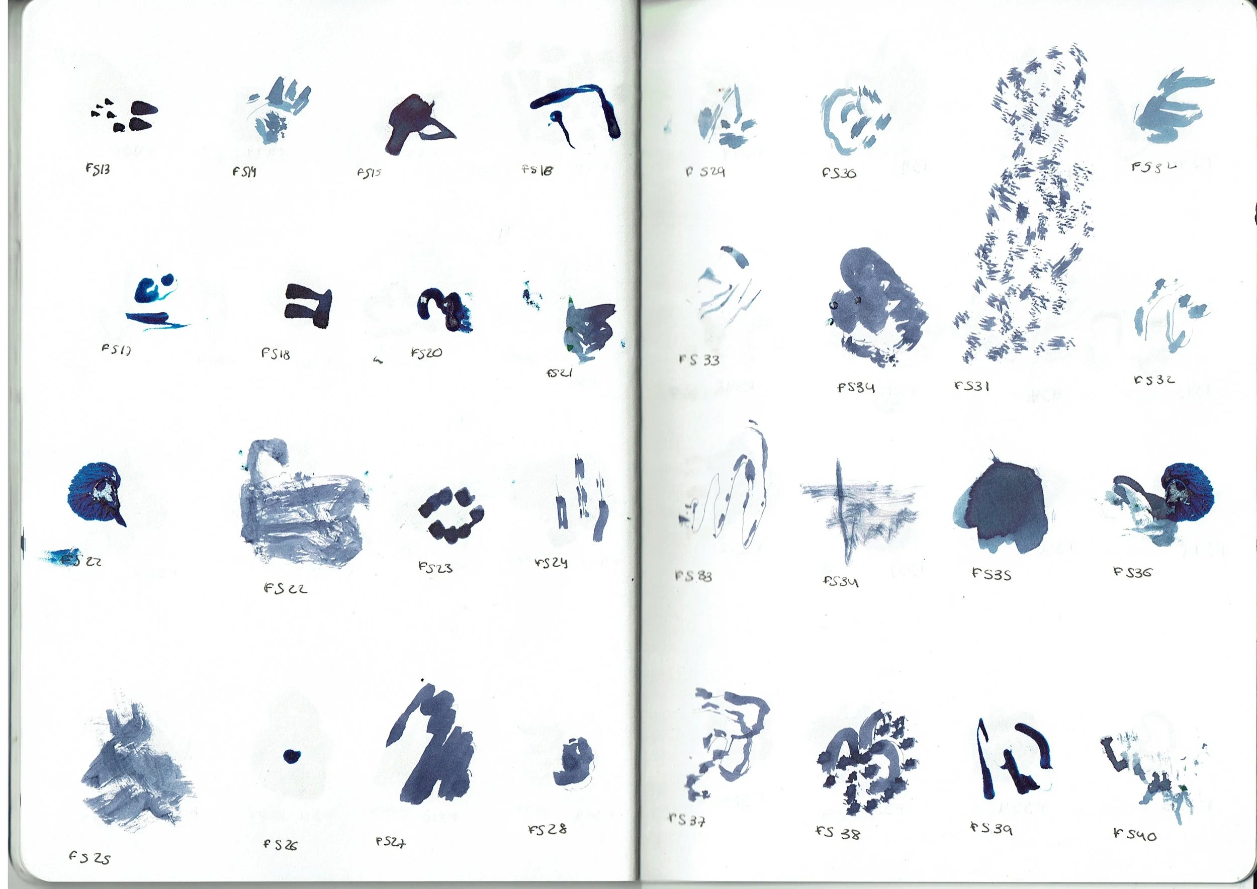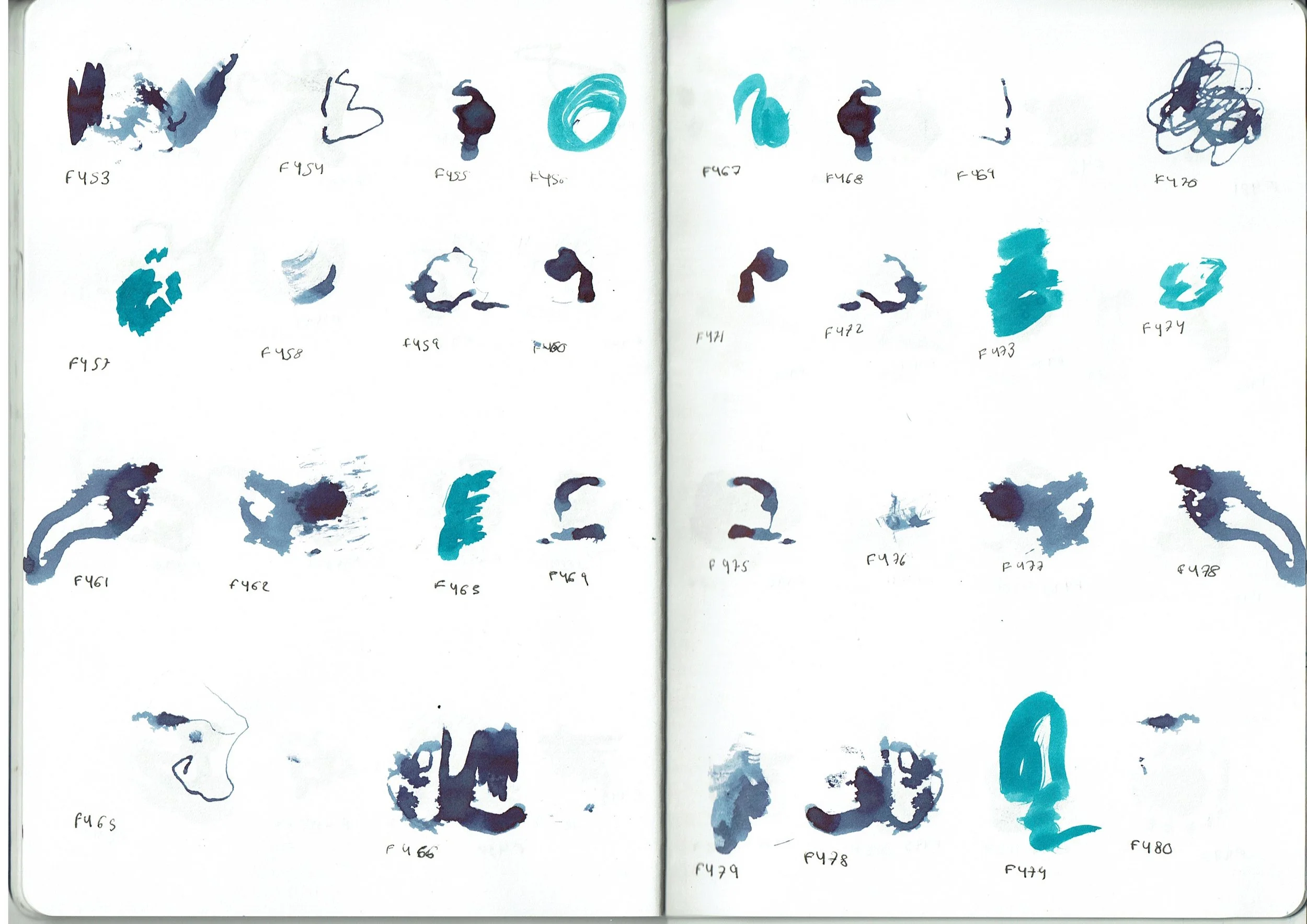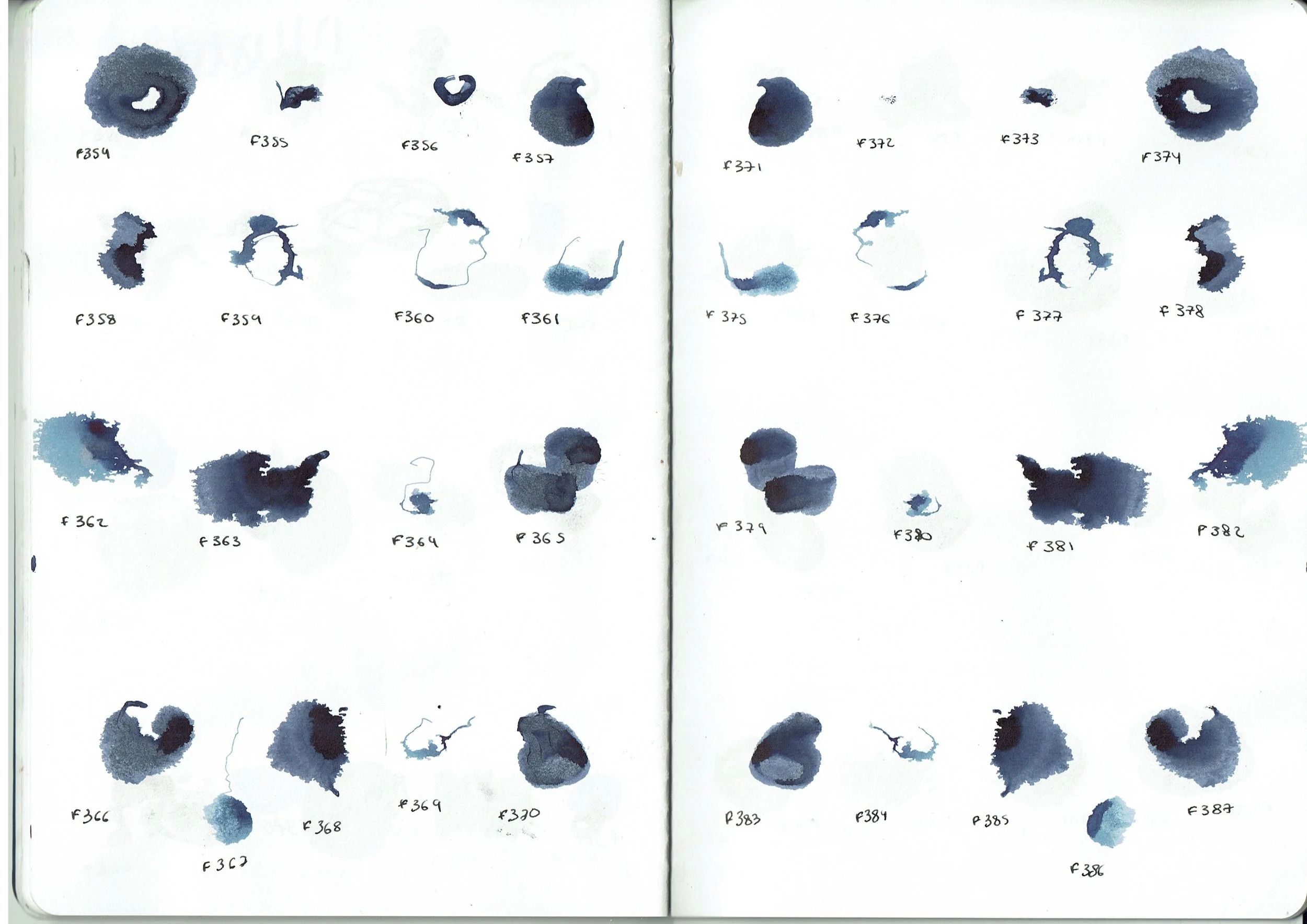 Aunque cada mancha sea diferente mi cerebro necesitaba algo de sosiego y ritmo en la relaización, de ahí la utilización de las misma gama cromática.