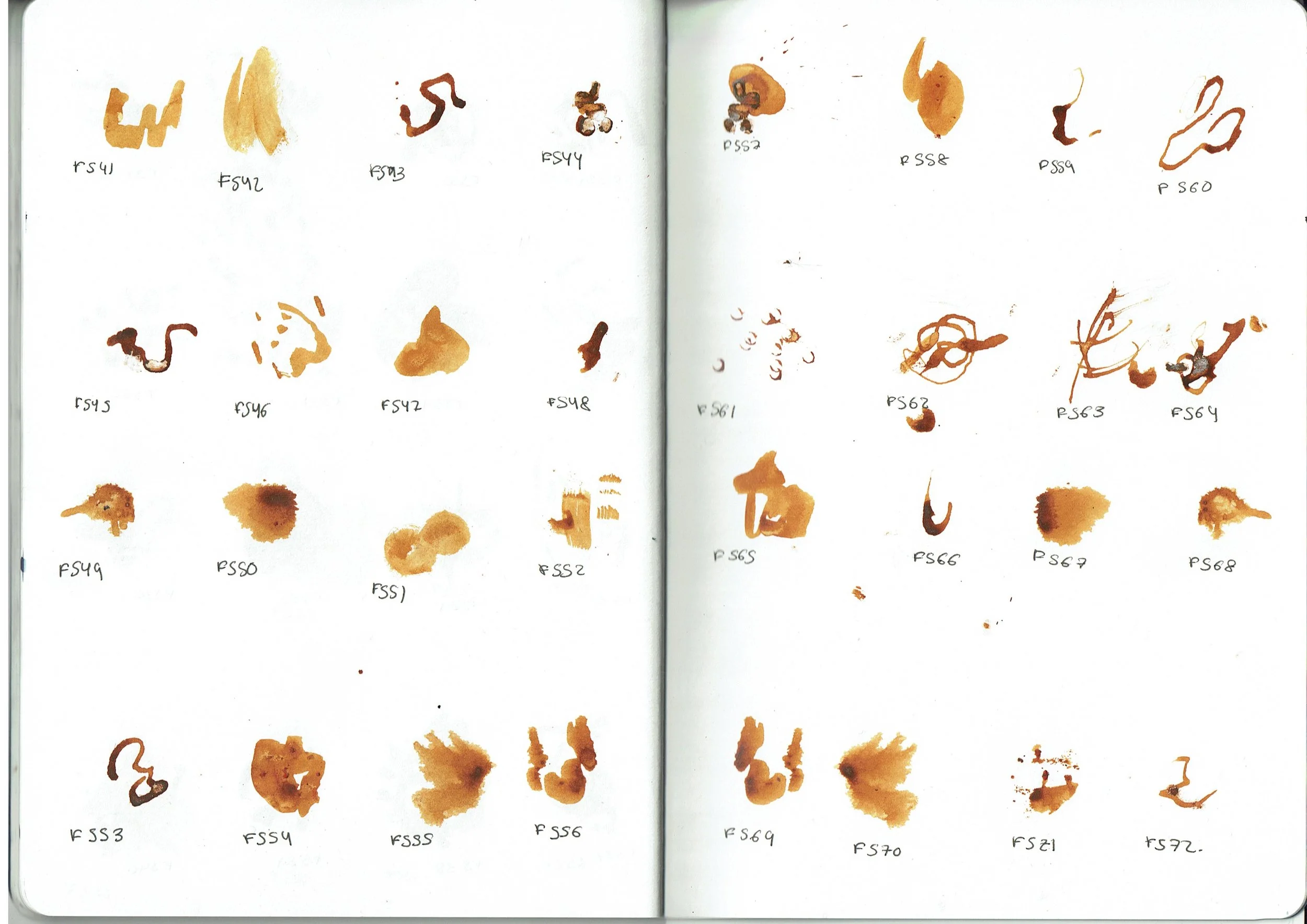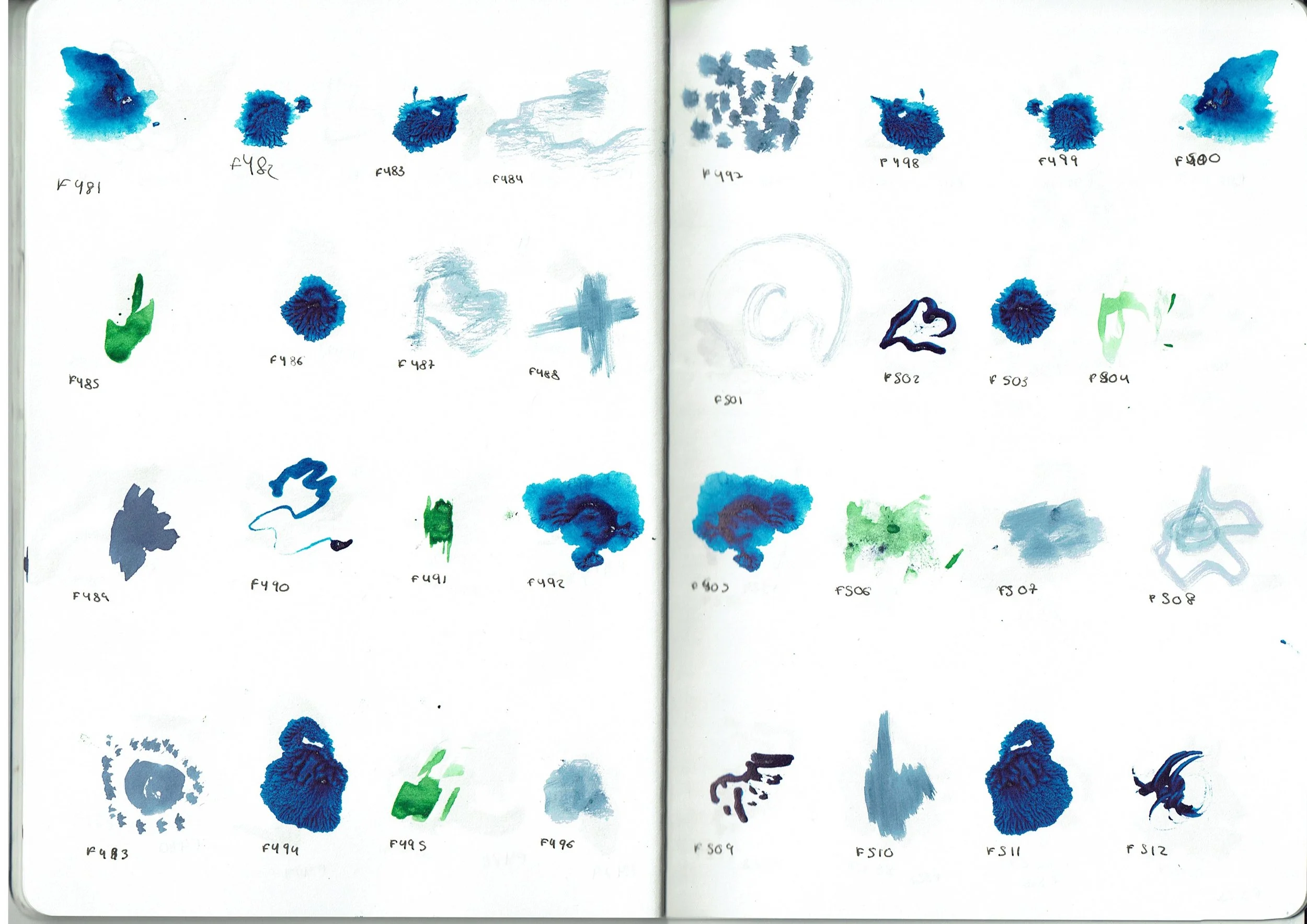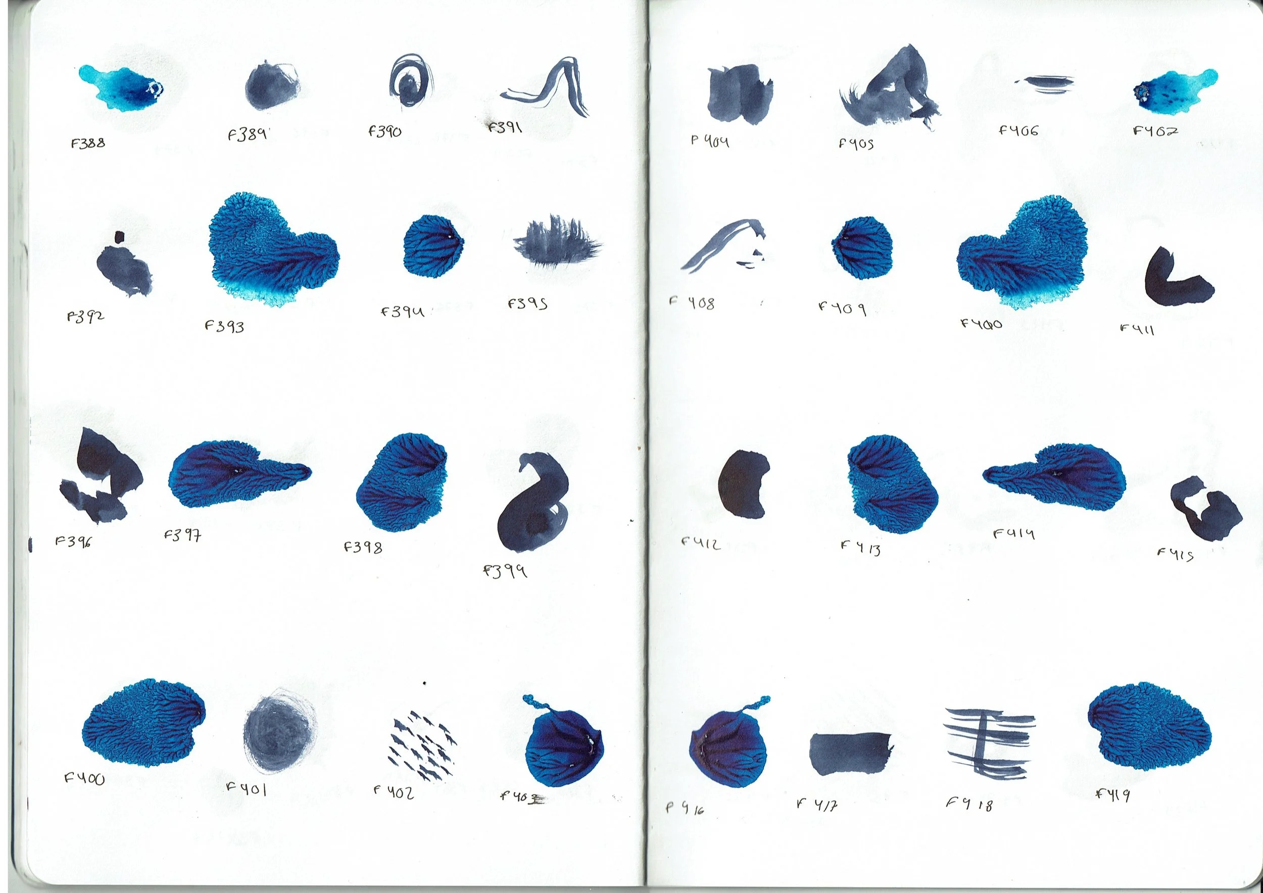 Aunque cada mancha sea diferente mi cerebro necesitaba algo de sosiego y ritmo en la relaización, de ahí la utilización de las misma gama cromática.